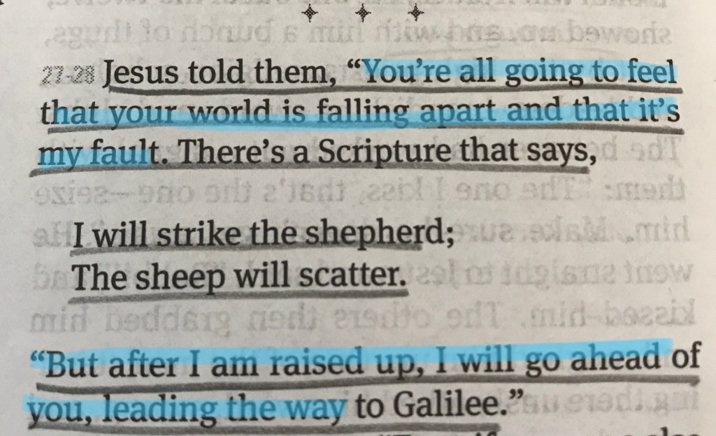 They’re out of the original context, in Mark 14:27-28. But they’re true to His character. And He tends to use Words to teach things that SO MUCH MORE than just for that moment.